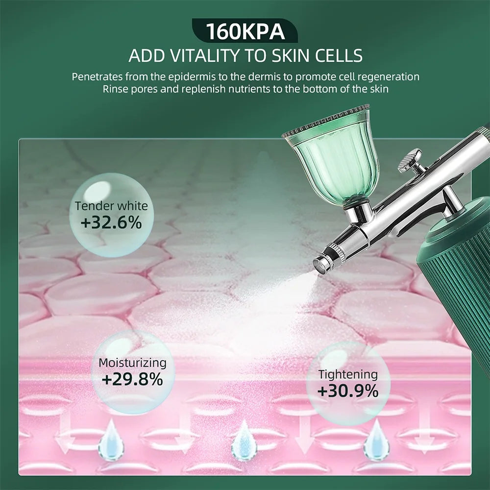 - Beauty & Skincare – Delivers mist for deep hydration, serum absorption, and flawless airbrush makeup.